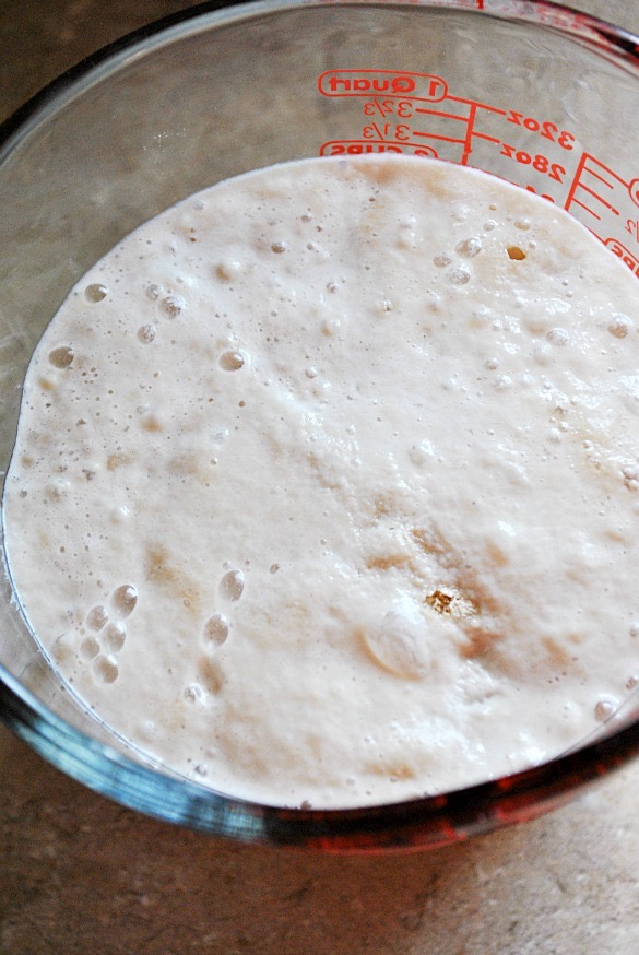 Let the yeast rest for about 5 minutes. You’ll know it’s ready when everything looks nice and foamy.