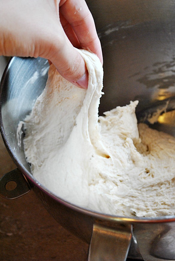 Pour the yeast water into the stand mixer with the flour, salt, and dry milk (you’ll have to scrape to get all of the honey out). Knead until dough starts to form, and then another 6 minutes beyond that. You can also do this part with a wooden spoon and your hands, but I really love using my stand mixer for this.